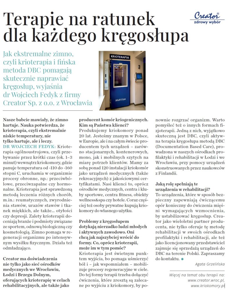 W najnowszy numerze Newsweek Polska ukazał się materiał o krioterapii. Zapraszamy